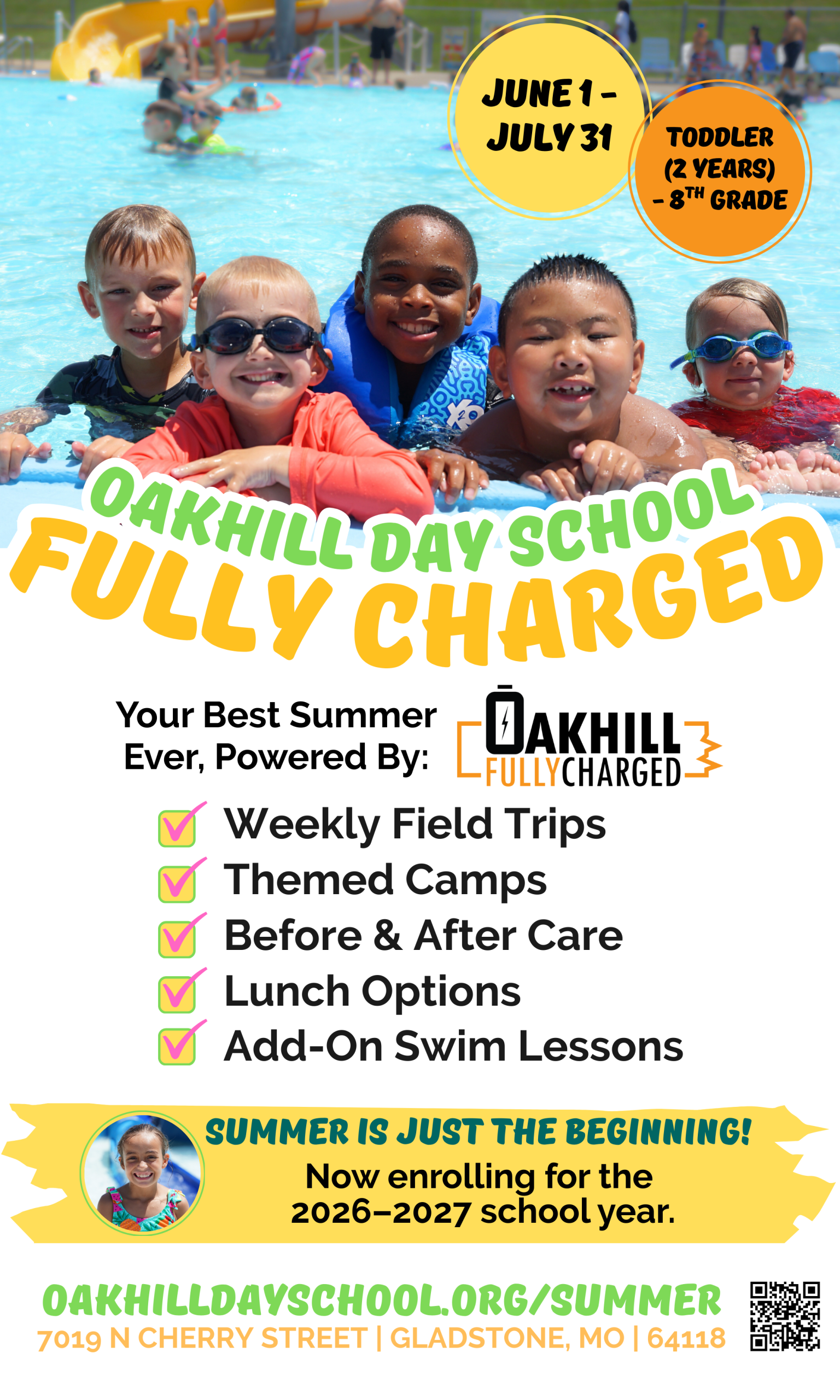 Itโs time to ease into summer! Consider spending your summer with Oakhill for summer 2025, They offer care for students grades/age Toddler (2 years old) through 8th Grade. Registration is open and sections are starting to fill!