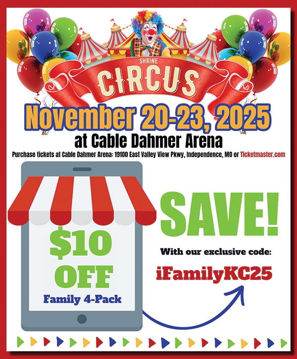 Join the fun November 20th-23rd at the Shrine Circus at Cable Dahmer Arena. Use the code โiFamilyKC25โ to save $10 on a family 4 pack