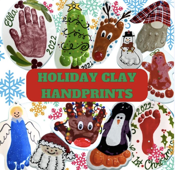 Holiday keepsake clay print ornaments are a priceless, heirloom-quality pottery piece we offer every year by appointment. We roll out wet clay and press your child's hand or foot into it, leaving an impression....