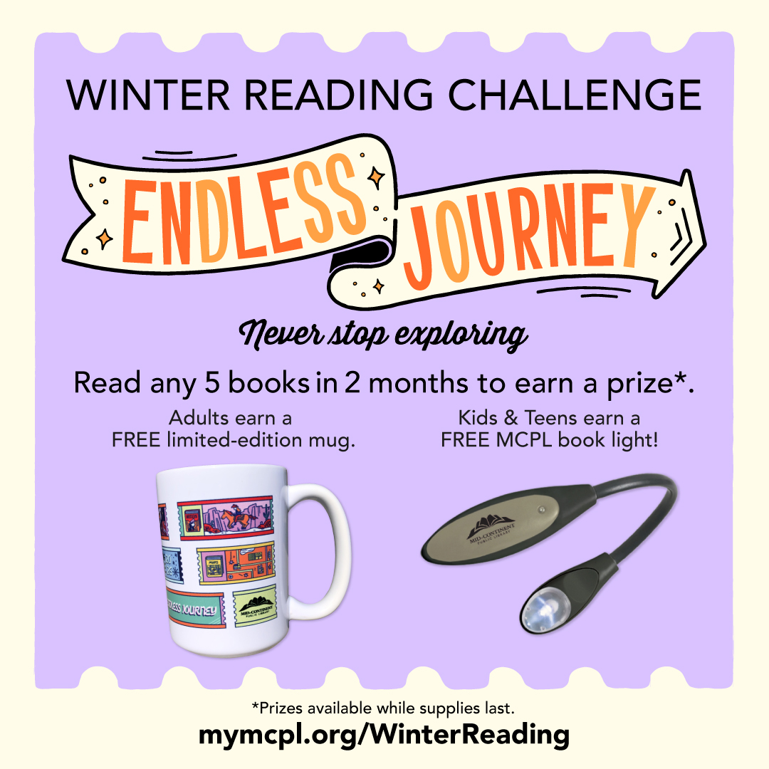 Join the Winter Reading Challenge! Adults (ages 18+) can indulge in leisure reading and earn a special incentive โ the limited edition 2026 Winter Reading Challenge mug โ by reading ANY five books within...